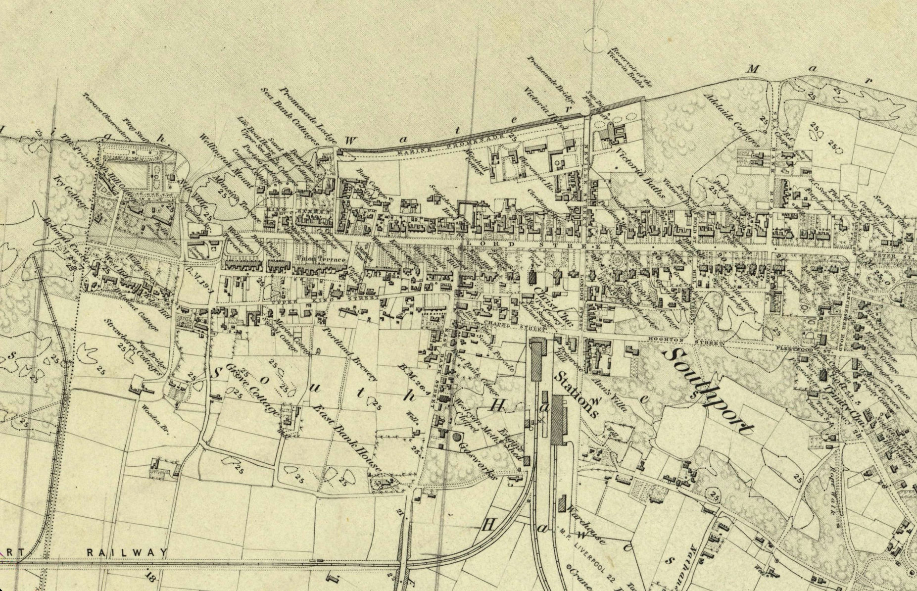 The two maps below show the difference in just a few years, the first map is the tithe map dating from 1839/40 and the second from the first o/s map dating from 1845, note the railway and station. The Liverpool, Crosby and Southport Line, opened in 1848.